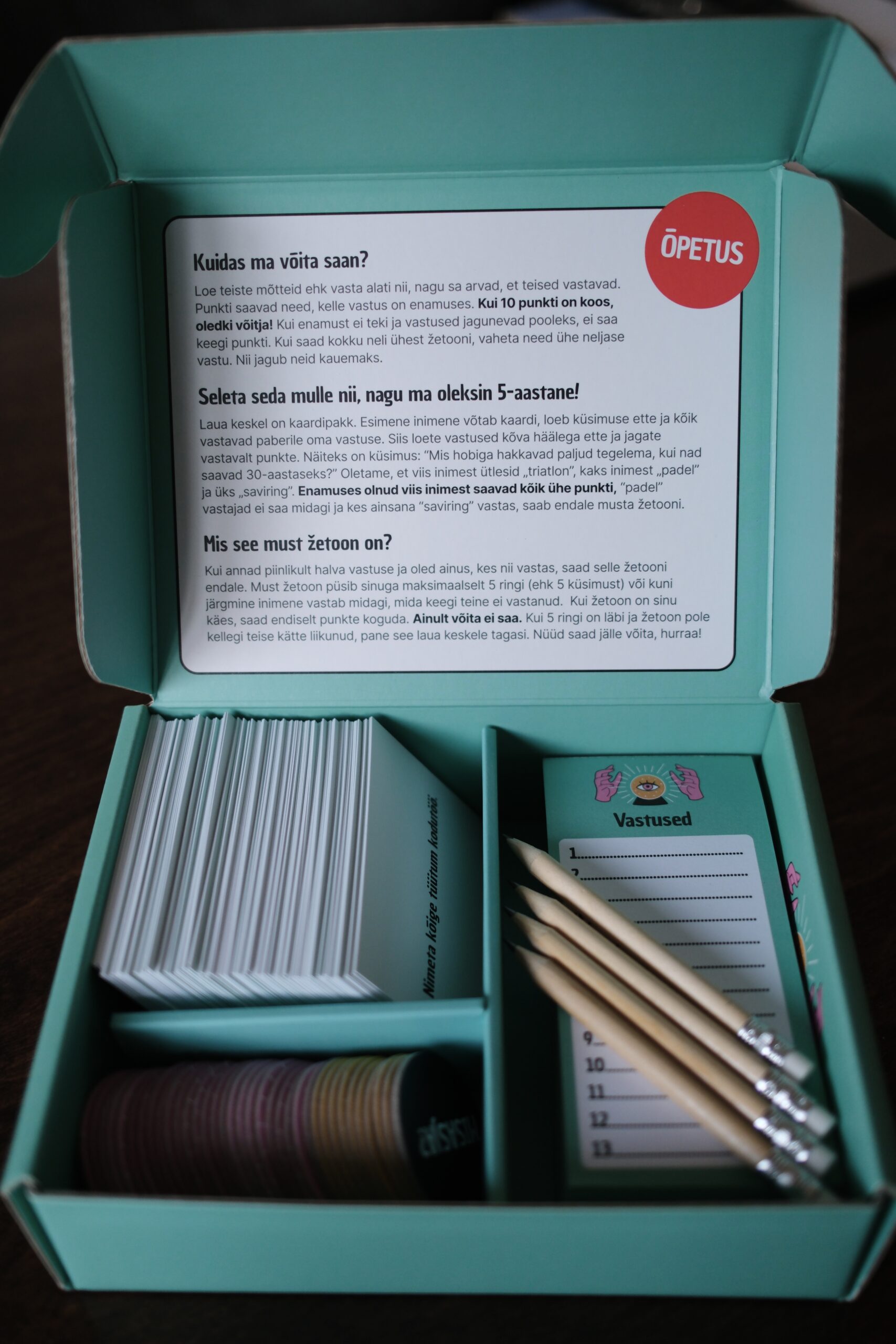 Vanus: 13+ (võib vabalt ka noorematega, aga paar küsimust võib sellisel juhul mängust välja